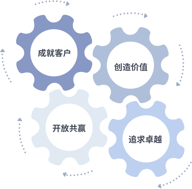 成就客户是一切决策的出发点,创造价值是衡量所有工作的标准,追求卓越是BBIN宝盈做事做人的态度,开放共赢是BBIN宝盈的格局也是最终的结果。价值观的齿轮环环相扣,推动着组织里的每个人不断向前。